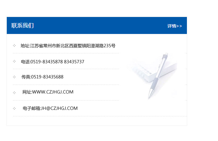 傳真:0519-83435688    郵編:213135    網址:WWW.czjhgj_com.maixianjf.com    電子郵箱:JH@czjhgj_com.maixianjf.com